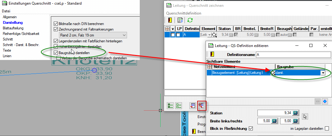 - Querschnitt: Bei neuen Definitionen ist die Darstellung der Baugrube jetzt standardmäßig eingeschaltet. Screenshot