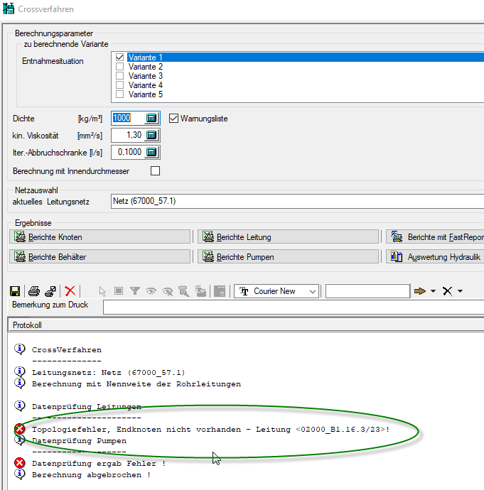 - Hydraulik: In der Datenprüfung die Überprüfung der Topologie erweitert. Screenshot